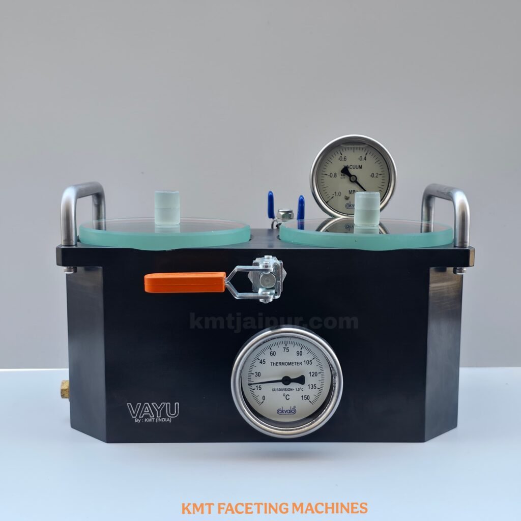 All New Vayu Emerald Oiling Machine. Vayu machine is used to enhance the beauty of gemstones. It is used to fill oil between the cracks on gemstone. Vayu machine is used for emerald and other gemstone. Machine comes with hot plate and vacuum pump.